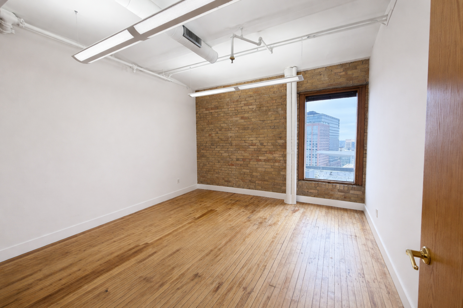 Suite 1010 at the historic Lumber Exchange offers 1680 square feet of character-filled workspace featuring hardwood floors, exposed brick, five private offices and a conference room. The suite also includes a convenient storage closet area and a functional design suited for a variety of professional uses.