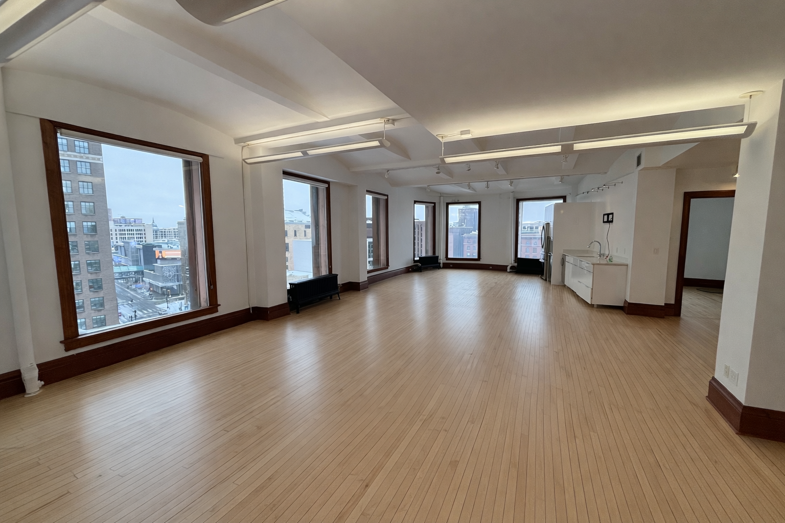 Suite 834 features beautiful hardwood floors, abundant natural light, a private office, and a dedicated conference room, creating a functional layout for a variety of professional uses. Large windows provide incredible views of Downtown Minneapolis, including Target Center, Target Field, and the iconic Bob Dylan mural. The space also includes a convenient kitchenette and storage closet.